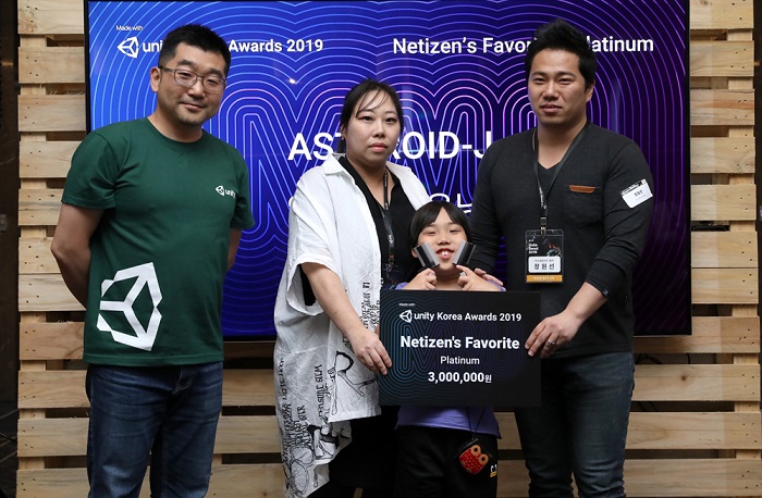 ... [자료제공= 비더블에스컴퍼니] 지난 21일 유니티 코리아가 개최한 국내 최대 규모의 개발자 컨퍼런스인 '유나이트 서울 2019 (UNITE SEOUL 2019)'에서 열린'메이드 위드 유니티 코리아 어워즈 2019(Made with Unity Korea Awards 2019
