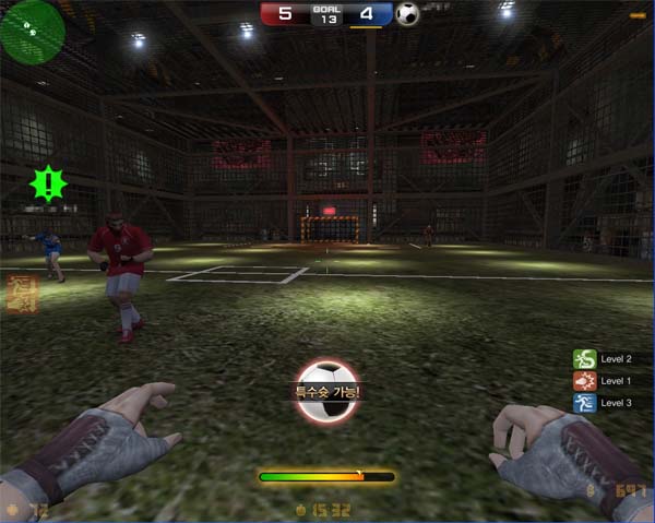 ... FPS(1인칭액션)게임의 시점과 제어방식을 도입했고 마우스로 공의 방향을 조작해 아날로그식 감각을 살렸다. 4대4 풋살 형태를 띄고 있지만 ‘진짜 축구’를 표방한 것도 특징이다. 프로축구 구단의 지역 연고 시스템과 시즌 중심의 경기 운용 방식을 도입해 단순함을 배제했다