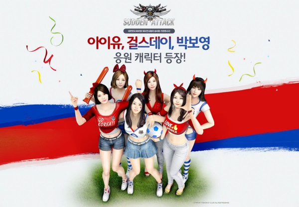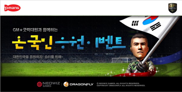 ... 넥슨은 응원 캐릭터 출시를 기념해 26일까지 ‘응원 캐릭터 기간 33일’을 모으는 유저에게 ‘KOREA’, ‘파이팅!’, ‘응원’ 칭호 3종을 모두 지급하며, 대한민국 대표팀 16강 진출 시 ‘KOREA 스킨 주무기’와 ‘축구공 수류탄’ 등으로 구성된 ‘대한민국 응원 패키지’를