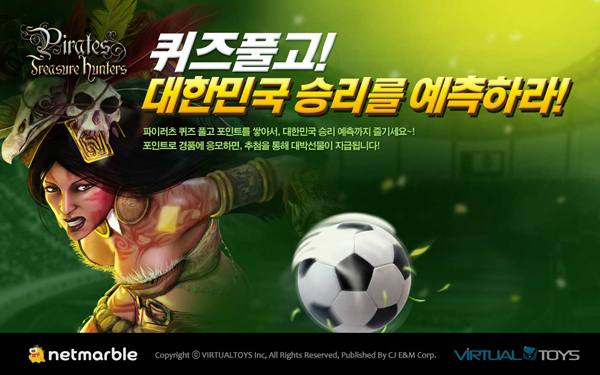...net/event/201406_worldcup/index. asp)에서 다양한 방법으로 포인트를 쌓은 후 최고급 PC용 그래픽 카드, 모니터, 문화 상품권 등의 경품 추첨에 응모할 수 있다. 포인트는 이달 27일까지 하루에 하나씩 제출하는 ‘파이러츠 : 트레저헌터’ 관련 퀴즈를
