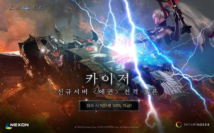 ... 신규 서버 오픈 이벤트로 카이저에 처음 접속한 이용자 모두에게 +9검 +5방어구 세트를 지급한다. 게임 내 최고 등급인 신화 등급 무기를 만들 수 있는 재료와 전설 등급 장비 아이템을 얻을 수 있는 최상위 콘텐츠인 신화 던전을 추가했다. 이달 26일에는 신화 등급 무기를
