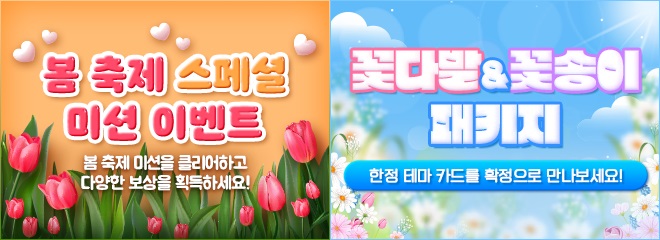 ... 일부 ‘SuperStar 시리즈’에서 진행하는 정규화 미션 이벤트는 미션을 모두 완료할 경우, 한정 테마 R 카드 2장과 다이아몬드 100개를 획득할 수 있어 유저들의 뜨거운 참여가 기대된다. 풍성한 인게임 재화를 담은 꽃다발&꽃송이 패키지도