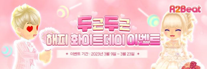 ... 해당 이벤트는 [달달한 매일]과 [일일 미션]을 완료하고 [선물상점]에서 보상을 교환 및 선물 할 수 있다. [달달한 매일]은 총 5일간 접속만 하면 보상을 얻을 수 있으며, [달콤한 미션]에서는 일별로 랜덤으로 나오는 미션들을 수행 후, 재화(사탕, 마카롱)를 얻어 [선물상점]