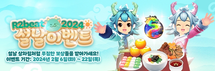 ... [일일 미션]에서 게임플레이와 각각의 랜덤미션들을 수행하면, 설날재화(떡국, 수정과, 모듬전, 송편)를 얻어 [교환 상점]에서 특별한 아이템들을 교환 및 선물이 가능하다. 또한, 신규 이벤트 [소원빌기]에서 청룡의 여의주를 합성하여 다양한 아이템을 얻을 수 있다. 그중