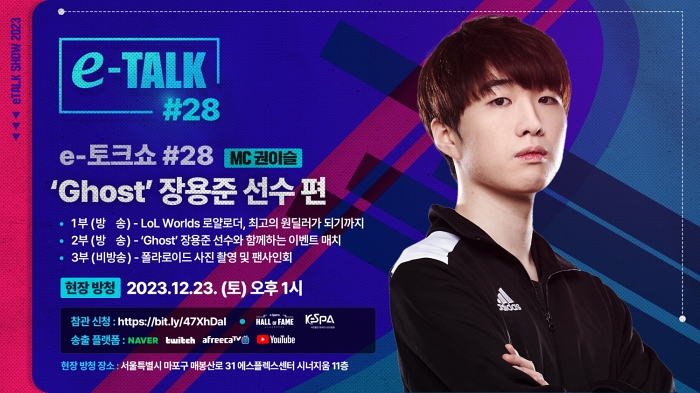 ... 실제로 전·현직 프로 선수, 종목사 관계자, 기자, 해설자, 방송 PD, 후원사 등 다양한 업계 전문가들이 연사로 참여해 행사를 빛내고 있다. 오는 23일(토) 오후 1시에 열리는 28회 ‘e-토크쇼’에는 리그 오브 레전드 ‘고