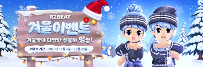 ... 일일 미션은 미션 수행 후 보상으로 제공되는 재화인 양말과 트리를 받아 [선물 상점]에서 특별한 아이템으로 교환하거나 선물할 수 있다. 또한, R2Beat는 주말을 맞이해 ‘키워드’ 이벤트 역시 진행 중이다. ‘키워드’ 이벤트는