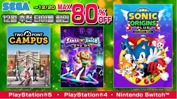 ... 할인 대상 타이틀과 할인율에 대해서는 특설 웹사이트를 통해 확인할 수 있으며, 할인 종료일은 12월 20일이다. 또한, 『Two Point Campus』의 할인은 12월 11일종료된다. ■ PS5™/PS4™/Nintendo Switch&trad