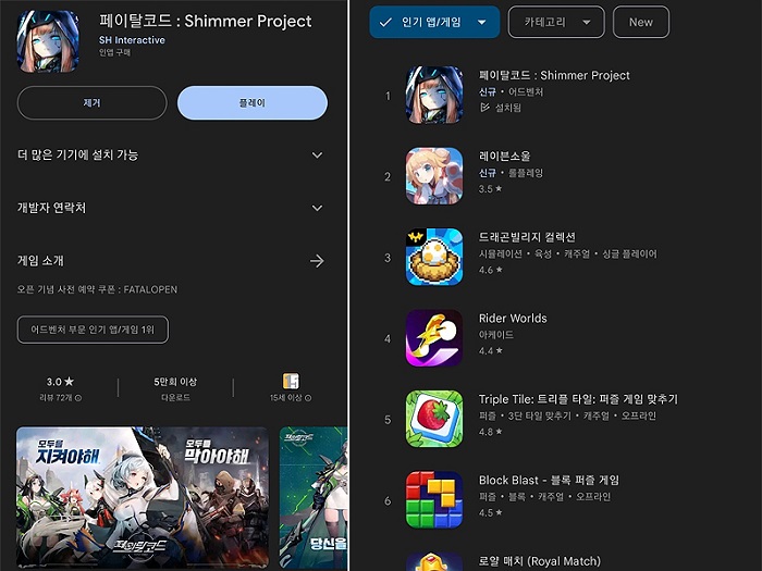 ... 지난 18일 정식 런칭한 '페이탈 코드'는 신생 SNS 스레드를 통한 친구 추가 이벤트와 공식 카페에서 응원 이벤트, 접속 이벤트 등 전체 유저들에게 푸짐한 경품을 제공하는 여러 정식 런칭 기념 이벤트를 진행 중이다. 한편, 서브컬처 기반 로그라이크 디