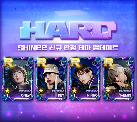 ... 그리고 26일 8번째 정규 앨범 ‘HARD’를 발매하고 본격적인 활동에 나섰다. 이에 맞추어 SuperStar SMTOWN을 개발 및 운영하는 달콤소프트는 28일 샤이니 정규 8집 앨범의 타이틀 곡 ‘HARD’ 업데이트를 진행해