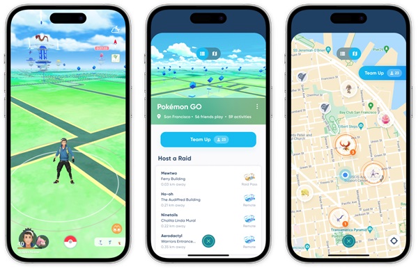 ... Campfire를 활용하면 다른 트레이너와 연락하는 것은 물론 지역 커뮤니티를 발견할 수 있으며, 근처에서 진행 중인 레이드배틀도 찾을 수 있다. 레이드 그룹 기능은 메뉴 또는 맵 뷰를 통해 레이드배틀을 개최할 것인지, 기존 배틀에 참여할 것인지를 선택할 수 있다.