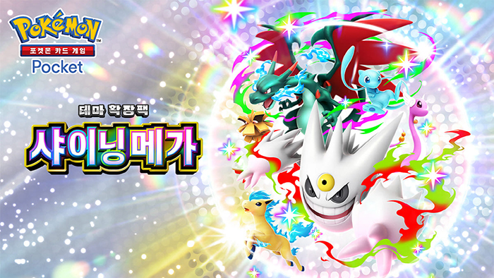 ... ‘샤이닝 메가’는 출시일 오전 10시부터 카드가 순차적으로 추가되며, 메가팬텀, 메가리자몽X 등 메가진화한 모습의 색이 다른 포켓몬을 최초로 만나볼 수 있다. 이번 테마 확장팩에는 색이 다른 피콘, 신뇽, 조로아, 포니타 등 다양한 포켓몬이 포함