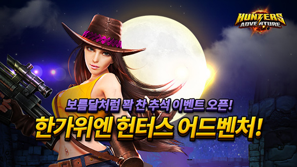 ... 이벤트 기간 게임에 접속한 이용자는 ‘할리’ 캐릭터(헌터)와 아이템(코스튬 상자)을 받을 수 있다. 14일부터 18일까지 보름달 인증 이벤트(달님에게 소원을 말해봐)가 열린다. 게임 내 등장하는 보름달의 스크린샷을 찍어 공식 카페에 올리면 자동 응모된다