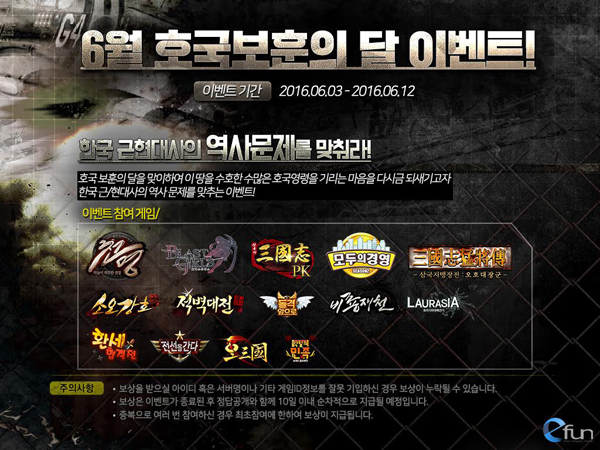 ... 먼저 ‘천명’은 은자 300전과 특대경험단(3개), 녹색책략과일(3개)과 초급잠금부적(2개)를 증정하며, ‘삼국지 PK’는 200만식량과 10만무혼, 100모병령을, ‘블래스트걸스’는 체력물약(10개)과 100다이아를, ‘오삼국’은 군령(10개)을 제공한다. ‘삼국지