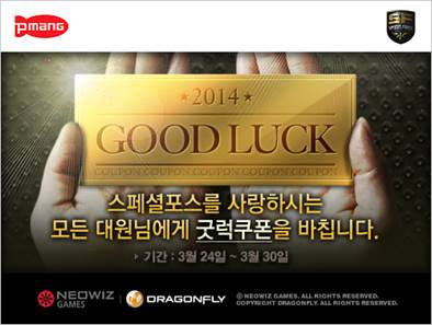 ... 또한 굿럭쿠폰을 5회 사용할 경우 이벤트를 통해 첫 공개되는 신규 영구 총기가 지급되며, 최대 10만포인트까지 게임머니를 추가로 받을 수 있다. 이와 함께 이벤트 기간 동안 경험치와 게임머니 획득량이 30%까지 증가해 빠른 속도로 캐릭터를 성장시킬 수 있다. 이 밖에도