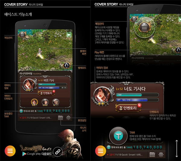 ... 리니지 모바일은 리니지 IP(지적재산권)를 활용한 스마트폰용 모바일 애플리케이션이다. PC버전 온라인게임과 연동된 리니지 모바일을 이용해 리니지의 다양한 콘텐츠를 즐길 수 있다. 엔씨소프트는 그간 버프의 커버 스토리를 통해 리니지 모바일에 대한 정보를 순차적으로 공개해왔