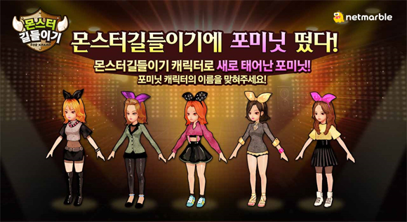 ... 캐릭터는 섹시, 상큼, 발랄 등 포미닛 각 멤버들의 외모와 느낌에 걸 맞는 이미지를 부여하는 컨셉 작업을 거쳐 원화로 제작한 후 다시 3D 모델링 작업을 통해 게임 내에 등장하게 된다. 넷마블은 이번 원화 공개를 기념해 오는 24일까지 ‘캐릭터 이름 맞추기’ 이벤트를 진행한