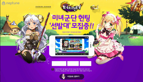 ... 넵튠의 조한상 이사는 “사전 등록 이벤트에 폭발적 호응을 보내주신 이용자 분들께 감사 드린다”며, “이제 곧 찾아 뵙게 될 액션감 넘치는 전투 방식, 노역장 시스템 등 RPG 고유의 게임성과 차별화된 컨텐츠로 무장한 전설의 터치헌터 출시를 기대해주시기 바란다”라고 전했다.