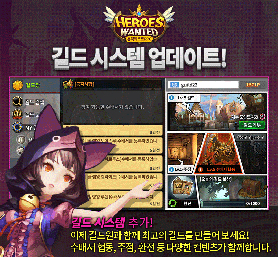 ... 이용자는 협동 수배서를 통해 길드원과 함께 퀘스트를 클리어 함으로서 더 큰 보상을 획득할 수 있다. 대규모 업데이트인 만큼 신규 에피소드의 추가와 이용자 편의성을 위해 게임 개선도 함께 진행됐다. 신규 에피소드 ‘이계의 군주’를 공개, 이용자들은 더 많은 스토리 스테이지