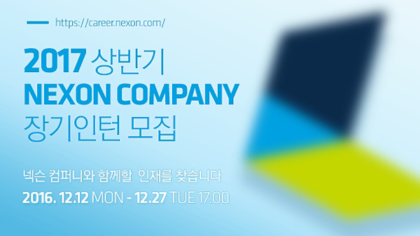 ... 이후 공통으로 ‘서류 전형’, ‘면접 전형’을, 개발 직군에 한해 별도의 ‘역량 테스트’를 거쳐 2017년 1월 중 최종 합격자를 발표하며, 합격자는 2월 6일(월)부터 7월 31일(월)까지 약 6개월간 각 분야의 실무를 담당하게 된다. 백한주 넥슨 인사실장은 "넥슨의 인턴
