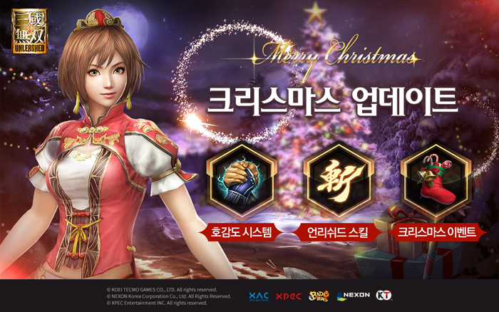 ...이와 함께 크로니클 모드 내 신규 지역 ‘서주’를 공개하고, 특정 재료와 은화를 활용해 코스튬 색깔을 다양하게 변경할 수 있도록 했다. 또, 크리스마스 전용 콘텐츠를 선보였다. 먼저, ‘조조’, ‘장료’, ‘손상향’의 크리스마스 코스튬을 추가하고, ‘달콤한 막대 사탕’ 무기, ‘