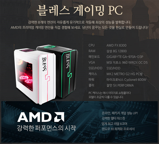 ... 또 PC방 사업주를 대상으로 하는 ‘블레스 게이밍 PC’ 프로모션 이벤트는 총 수량 500개로 제한되는 한정 판매 행사로 특별 판매가 53만원에 진행된다. 해당 이벤트는 PC방 업주에게만 제공되며 한 PC방 당 최대 5대까지 구매할 수 있다. 게임 쿠폰은 블레스
