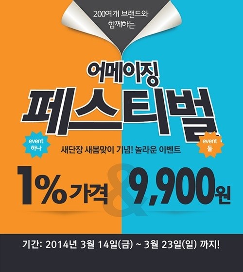 ... 99%라는 전무후무한 할인율을 선보이는 1% 가격 행사에는 뉴발란스 운동화가 1190원, 아디다스 재킷 1490원, 네파 팔토시 150원, K2 후드티 1,290원, 코데즈컴바인 티셔츠 190원, 펠틱스 청바지 790원, 컨버스 운동화 450원, 푸마 운동화 890원, 트윈키드