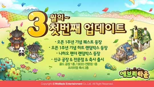 ... 또 '클렌징 오일 공장'과 '그릴 포크 전문점'을 새롭게 추가하고, 프리미엄 축사 '젖소우리', '염소우리' 2종도 선보였다. 한편, '에브리타운 for Kakao'는 신규 콘텐츠 업데이트와 더불어 11일부터 4일 동안 기존 이용자와 신규 이용자가 함께 즐길 수 있는 '단체