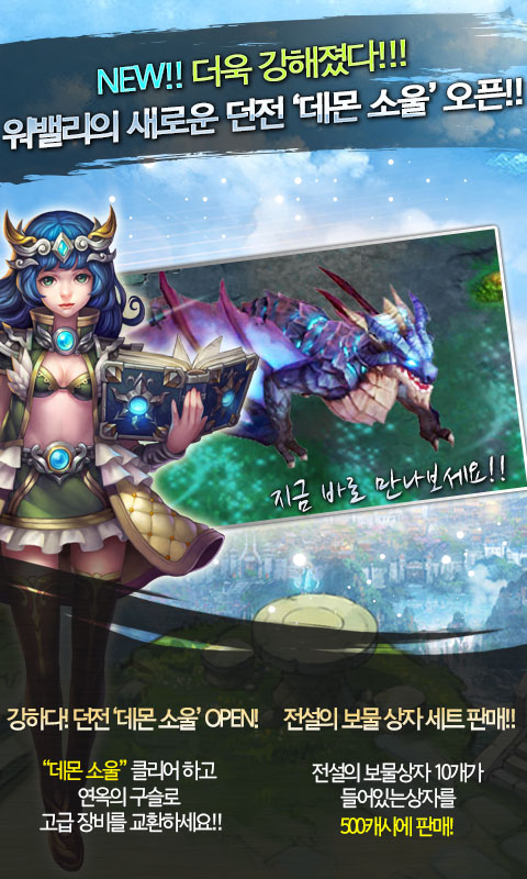 ... 워밸리 유저들은 필드와 던전에서 몬스터를 처치하고 사랑의 문자 'L', 'O', 'V', 'E' 를 얻은 후 디바인 성의 NPC에게 가져가면, 문자 아이템을 조합해 화이트데이 기념 한정 선물로 교환할 수 있다. 특히 게임 내에서 20골드를 소비해 결혼한 커플에게는 10골드의