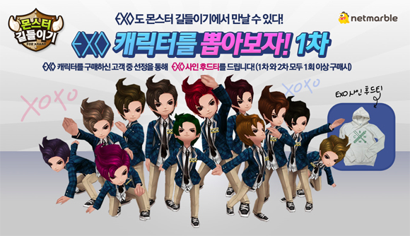 ... 이번에 공개된 엑소 캐릭터는 디오, 백현, 레이, 첸, 세훈, 수호, 찬열, 크리스, 루한, 타오, 샤우민, 카이 등 12명의 멤버 전원으로 구성됐다. 교복패션을 통해 풋풋한 느낌을 강조하고 각기 다른 외형과 능력치를 부여해 캐릭터마다의 특징을 살렸다는 게 회사 측의 설명이다