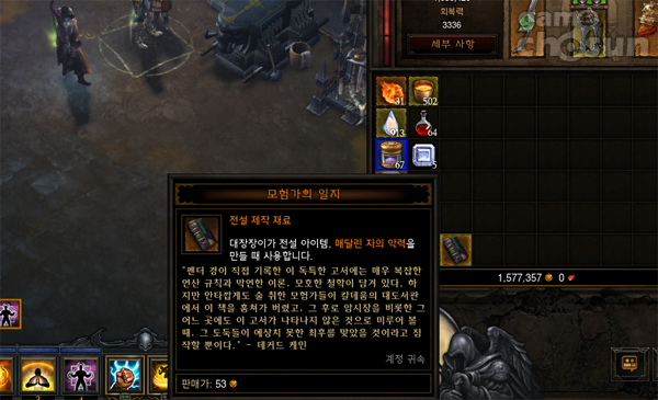 ... 해당 아이템은 전설 등급으로 계정 귀속인 탓에 사냥으로만 얻을 수 있으며 오리지널 버전에서 레오릭의 정강이뼈나 파괴의 열쇠 등 제작 재료와 같은 등급이다. 눈길을 끄는 점은 또 있다. 디아블로 홈페이지에 올라와 있는 정보를 살펴보면 70레벨 아이템을 제작할 때에는 현재 아이
