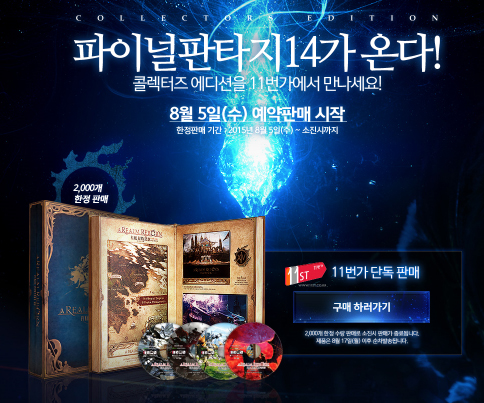 ... 이번 '파이널판타지14' 예약판매는 2000개 한정 판매되고 게임은 14일 출시되나 해당 패키지는 17일부터 차례로 발송될 예정이다. 한정판 패키지는 게임 일러스트북과 사운드트랙, 신생 에오르제아의 불꽃을 형상화한 USB, 게임 설치 DVD, 30일 정액권, 게임 내 선