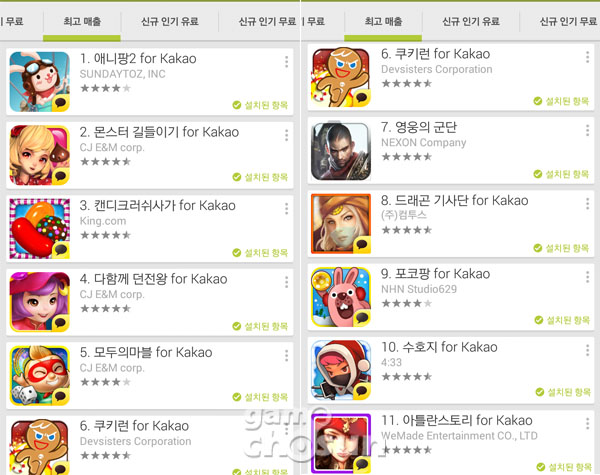 ... 매출 순위 10위 권 내 RPG 장르는 두 게임과 '몬스터길들이기 for kakao' '드래곤기사단 for kakao'을 포함해 모두 4종이다. 지난 13일 최고 레벨 상향 조정의 업데이트를 단행한 위메이드의 '아틀란스토리 for kakao'는 11위에 올라 10위권 재진입