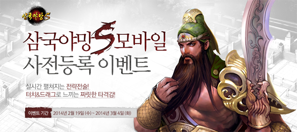 ... 간편한 위임 전투, 정교한 수동 전투 모드도 재미를 더할 예정이다. 또 NPC와 대결하면서 장수를 성장시키고, 국가전, 군단전에 참여해 다른 게이머와 대결하며 실력을 겨룰 수도 있다. 삼국야망S는 3월 4일까지 사전등록을 완료하는 회원들에게 푸짐한 상품을 증정한다
