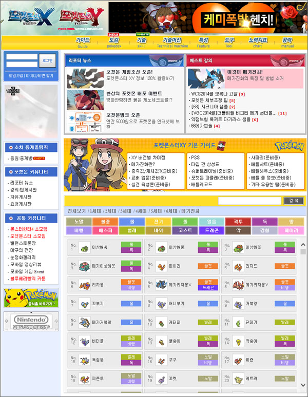 ...kr)'을 지난 17일 열였다. 이 사이트는 포켓몬스터XY 전국도감을 비롯해 기술, 기술머신, 특성, 도구, 노력치표, 공략, 가이드 등의 정보를 다루며 게임과 관련된 뉴스와 유저팁 등을 게이머들이 공유하는 공간이다. 포켓몬 게임조선에서는 이번 사이트 오픈을 기념해 사이