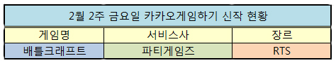 ... 배틀크래프트는 기지를 건설하고 자원을 생산하며 방어 타워를 배치해서 상대방과 전투하는 RTS 게임으로 가상의 3차 세계대전 배경에 보병, 탱크 부대, 공군이 모두 등장해 웅장한 스케일을 자랑한다. 파티게임즈는 연합군 지원 시스템과 친구 지원 기능을 업데이트해 카카오톡 친구