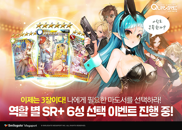 ... 특히 바니걸로 바뀐 미우, 셀라, 델핀 등 3명 사서들의 복장과 외형이 조금씩 바뀌어 유저들에게 저마다의 매력을 뽐내고 있다. 스마일게이트는 이번 업데이트를 기념해 다양한 이벤트도 마련했다. 우선 접속한 모든 유저들에게 3주에 걸쳐 방어, 공격, 회복 등 역할별 SR+ 6성