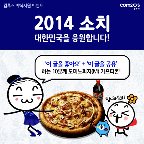 ...com/com2uskor)에 게재된 ‘컴투스 야식지원 이벤트’ 내용에 ‘좋아요’를 클릭하고 해당 글을 공유하면 참여할 수 있다. 컴투스는 이벤트 참여자를 대상으로 추첨을 진행하고, 10명의 당첨자에게 도미노피자와 콜라 세트 기프티콘을 증정한다. 컴투스 관계자는 “유저들과 함