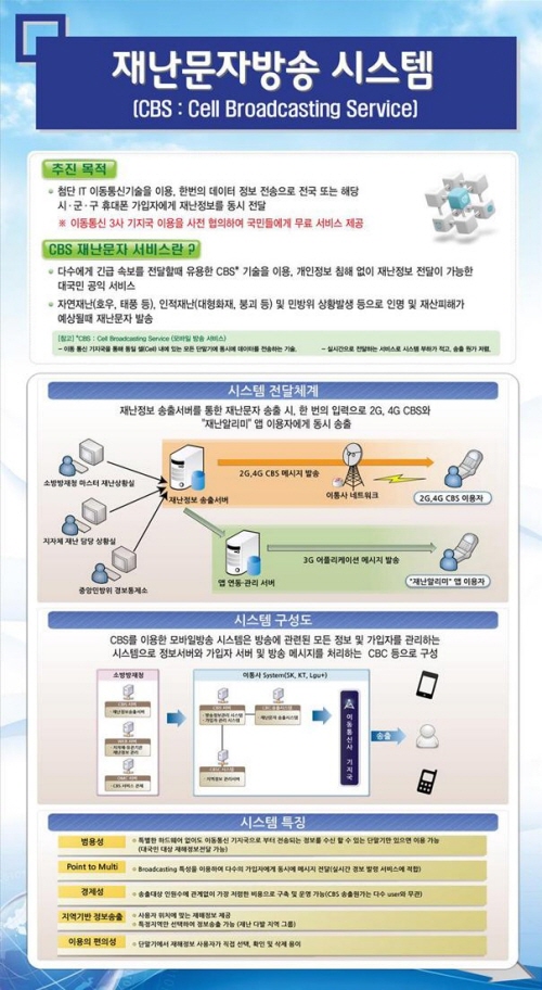 ... 긴급재난문자는 소방방재청에서 태풍과 홍수, 폭설 지진 등 각종 재난 대비를 위해 시민들에게 발송하는 문자다. 앞서 소방방재청은 지난해 1월 1일부터 출시되는 모든 휴대폰에 대해 긴급재난문자 수신기능이 의무적으로 탑재되도록 재난 및 안전관리기본법을 개정한 바 있다. 아이폰 사용