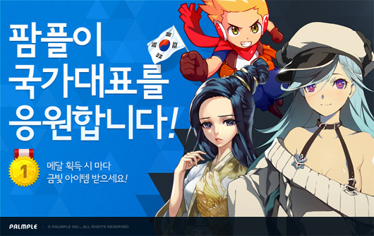 ... 또 대한민국 선수단이 출전한 종목에서 각각 메달을 수상하거나 4~5위에 입상할 경우, 게임 별로 아이템을 획득할 수 있는 쿠폰을 증정한다. 각 게임 별로 진행되는 ‘팜플이 국가대표를 응원합니다!’ 이벤트는 게임 별로 정해진 특정 액션을 통해 포인트를 획득하고, 이벤트 기간