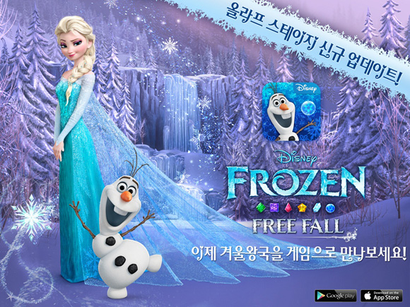 ... 이번 업데이트는 30개의 신규 스테이지와 눈사람 '올라프'-순록 '스벤' 캐릭터 추가가 진행됐다. 디즈니는 업데이트를 기념해 접속하는 유저들을 대상으로 유료 게임 아이템을 무료로 제공한다. 또한 디즈니 게임 공식 카페에서 가장 활발한 활동을 보인 게이머를 선별해 특별 선물