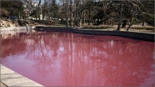 ...공원 관리자에 따르면 청명했던 호수물이 한순간에 붉게 변했고, 수면에는 옅은 기름띠가 형성됐다. 또 물에서 간간히 악취가 풍긴다고 해졌다. 신고를 받고 해당 관청 수질관리처 및 전문가들이 직접 호수를 살폈지만 아직까지 정확한 원인을 파악하지 못한 것으로 알려졌다