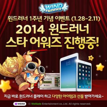 ... 이와 함께 모든 이용자 대상으로 각 분야별로 시상하는 ‘윈드러너 스타 어워즈’가 개최된다. 1월 30일부터 2월 2일까지 매일 한 분야씩 공개되며 다양한 기준에 따라 최소 10루비부터 100루비까지 증정한다. 이와 함께 게임 내 특별한 콘텐츠 별로 탐헝왕, 합성왕, 최우