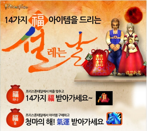 ... ‘신규회원 이벤트’로 문화상품권을 100명에게 지급한다. ‘8초식 무공이벤트’로 마왕의 유산 아이템 사용시 획득율을 증가시키고 몬스터 사냥 및 PVP를 통해 드랍되는 ‘근’ ‘하’ ‘신’ ‘년’ 글자 아이템을 모아 조합하면 떡국 아이템을 얻을 수 있으며 떡국 아이템을 사용시