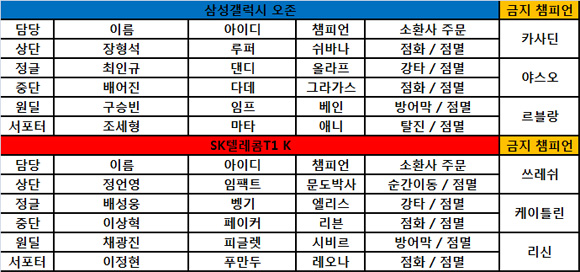... 오존은 라인전에서 리븐에게 약한 그라가스를 상단으로 올려보냈고, 하단 듀오를 중단(미드)로 보내 리븐을 맞상대하게 했다. 오존은 하단 듀오가 중단에 있는 이점을 활용해 적극적으로 정글 싸움을 유도해 유하게 이끌어나갔다. '벵기' 배성웅(엘리스)은 '다데' 배어진(그라가스