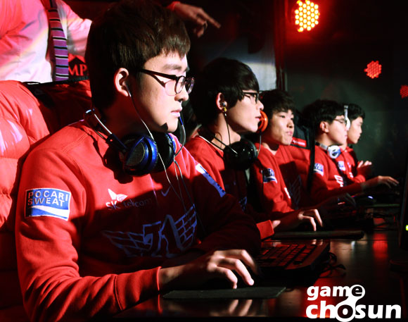 ... '벵기' 배성웅(누누)은 레드와 블루 버프를 획득한 이후 상단(탑)으로 갱킹을 시도해 '루퍼' 장형석(자크)의 점멸을 소모시키는 데 성공했다. 7분경 '다데' 배어진(야스오)이 '페이커' 이상혁(카서스)을 솔로킬 내는 듯 했으나 적절한 지원에 의해 죽임을 당하지는 않았다.