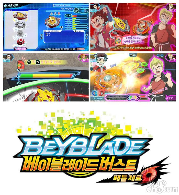 ...이외에도 텍스트의 한글화뿐만 아니라 애니메이션 시리즈에 참여한 유명 성우를 포함한 다양한 성우들이 음성 더빙 작업을 하여 캐릭터들의 생생한 음성을 우리말로 즐길 수 있다. 닌텐도 스위치 전용 소프트웨어 ‘베이블레이드버스트 배틀 제로’는 2019년 봄에 발매될 예정이며, 희망소비자가