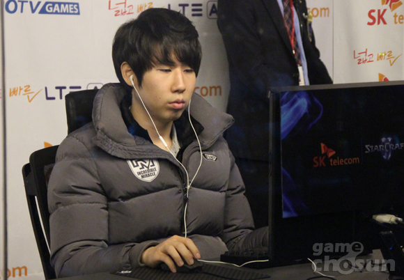 ... 정종현은 앞마당을 확보한 이후 병영 세기에서 마린을 생산하며 힘싸움을 도모했고, 이제현도 예언자 한 기를 생산해 정찰을 하며 전투를 준비했다. 정종현은 의료선이 네 기가 되는 타이밍에 생산해 둔 해병과 불곰으로 진출을 시도했다. 이에 이제현은 거신을 다수 갖추며 테란의 병력