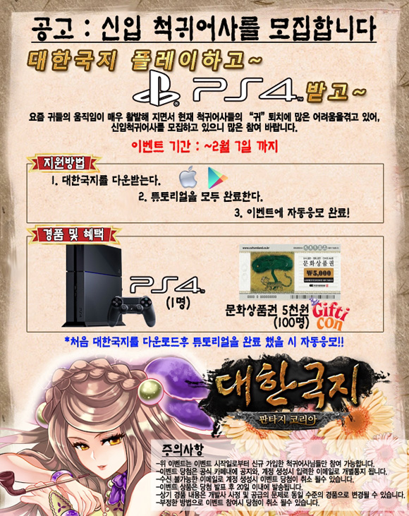 ... 당첨자는 ‘대한국지’ 공식 카페와 ‘대한국지 게임조선’에서 발표된다 ‘대한국지’는 한국 역사를 기본으로 허구를 섞은 판타지 TCG다. 이용자는 한 명의 어사가 돼 건국 신화 단군, 환웅, 웅녀는 물론 백제 건국 설화에 나오는 소서노, 고구려 광개토대왕 등 유명 국내 무장들과