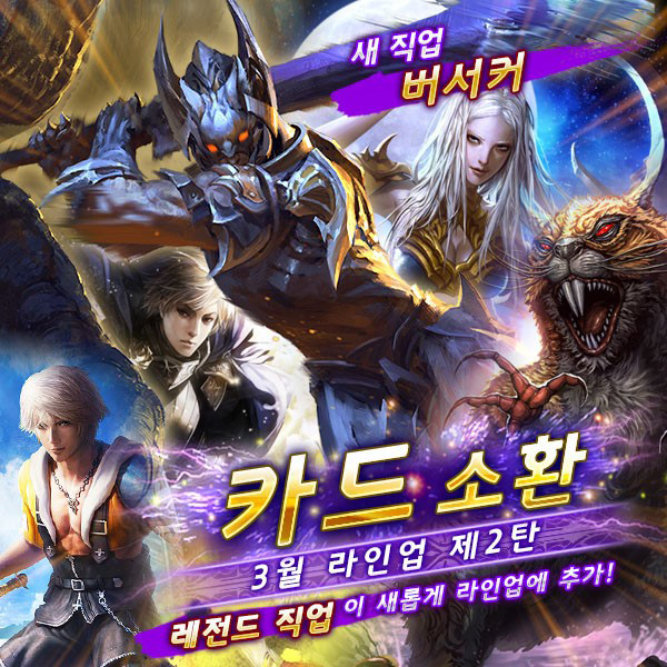 ...또, ‘버서커’와 상성이 좋은 어둠 속성 어빌리티 카드 ‘아몬’과 ‘아방크’를 비롯, 범위 공격을 지원하는 ‘셀키스’ ‘솔로몬’, 단일 대상에 강한 공격을 가하는 ‘올란두’가 추가됐다. 단일 공격과 전체공격을 아우르는 레전드 직업 ‘에이스 스트라이커’도 소환을 통해 다시 만날 수