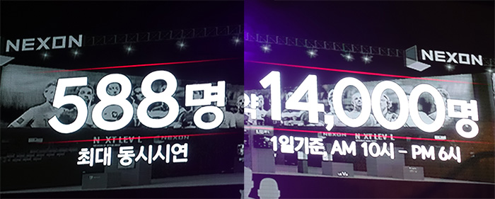 ...시연 부스는 최대한 많은 인원이 한번에 즐길 수 있도록 구성됐다. 시연 시간은 온라인게임 15분, 모바일게임 10분으로 최대 588명이 동시에 플레이 가능하다. 오전 10시부터 6시까지 시연한다면 1만4000명을 수용 할 수 있다는 것이 넥슨 측의 설명이다